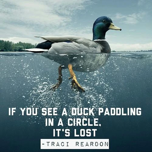 - Traci Reardon: If you see a duck paddling in a circle, it's lost.